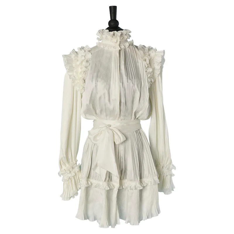 The Alexandre Vauthier Off-White Pleated Cocktail Dress with Ruffles is a pre-owned Alexandre Vauthier designer shoe available for purchase across multiple resale platforms. Find this item on 1stDibs.