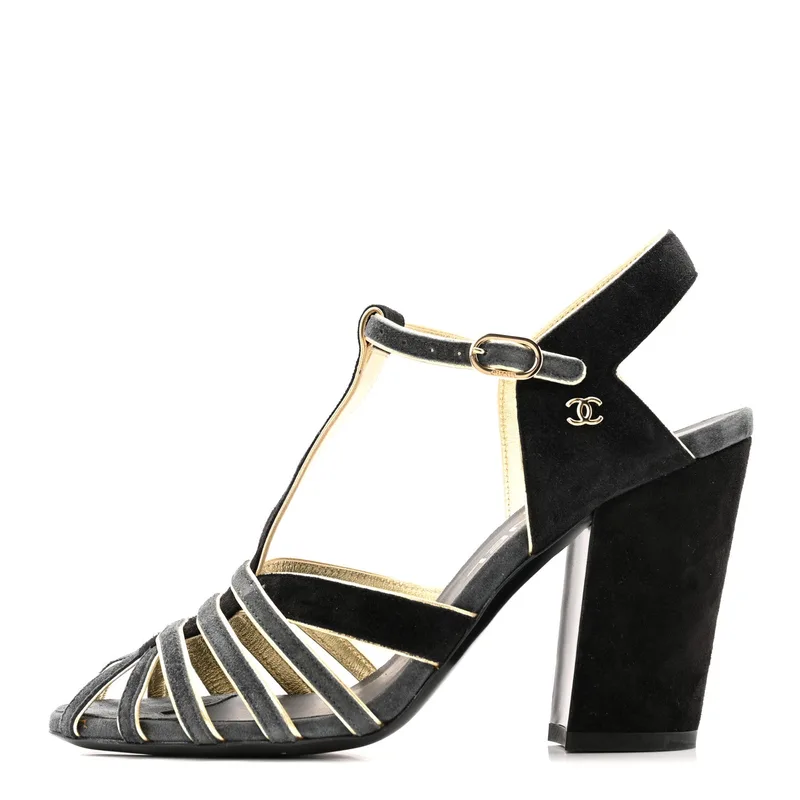 The Chanel Suede Calfskin Peep Toe Ankle Strap Pumps 37 Black Grey is a pre-owned Chanel designer shoe available for purchase across multiple resale platforms. Shop 1 active listing with prices ranging from $550. Find this item on Fashionphile.