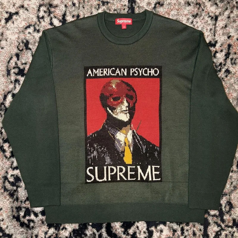 The Supreme Supreme x American Psycho Green Sweater is a pre-owned Supreme item available for purchase across multiple resale platforms. Shop 1 active listing with prices ranging from $220. Find this item on Grailed. Listings are available in Like New condition, so you can choose the quality and price point that suits you.
