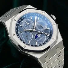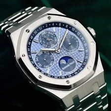 The Audemars Piguet Audemars Piguet Royal Oak Perpetual Calendar Blue Steel MINT FULL SET 26574ST is a pre-owned Audemars Piguet watch available for purchase across multiple resale platforms. Shop 3 active listings with prices ranging from $128,994 – $149,754. Find this item on eBay. Listings are available in Good condition, so you can choose the quality and price point that suits you.