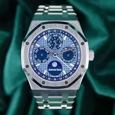 We currently track 3 listings for the Audemars Piguet Audemars Piguet Royal Oak Perpetual Calendar Blue Steel MINT FULL SET 26574ST, with prices ranging from $128,994 – $149,754 from eBay.