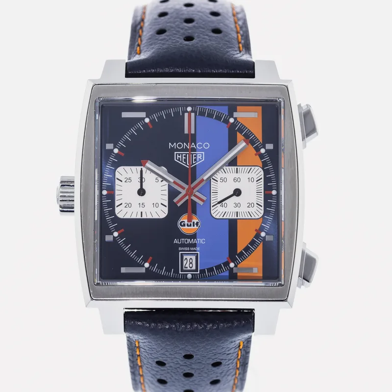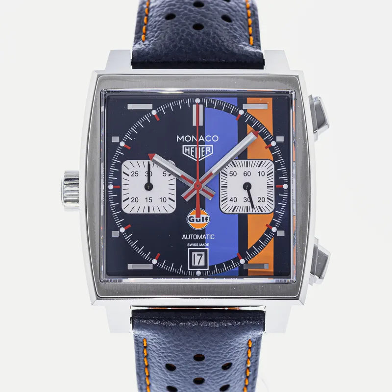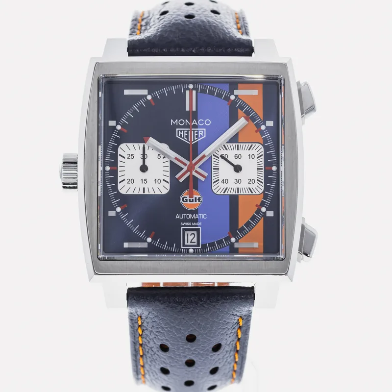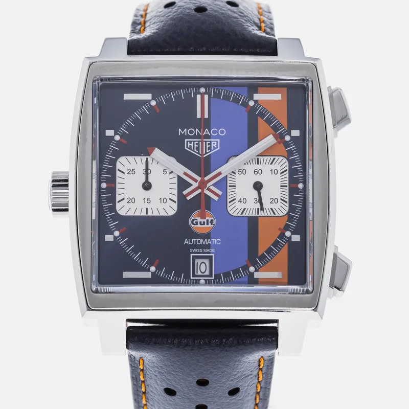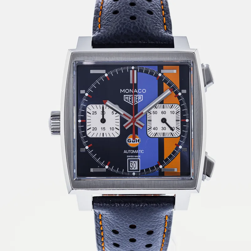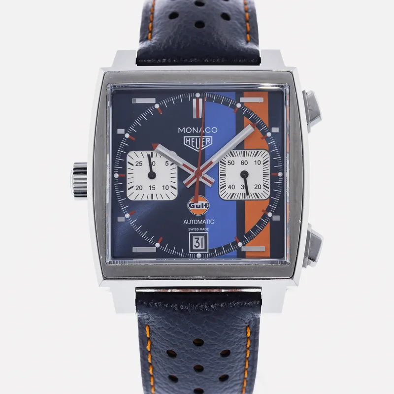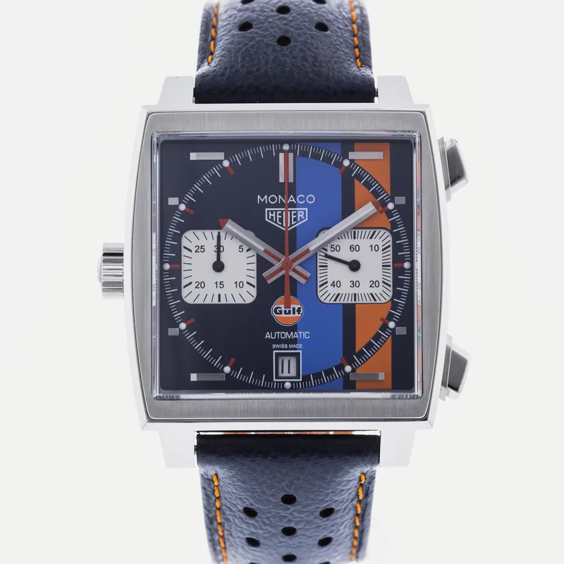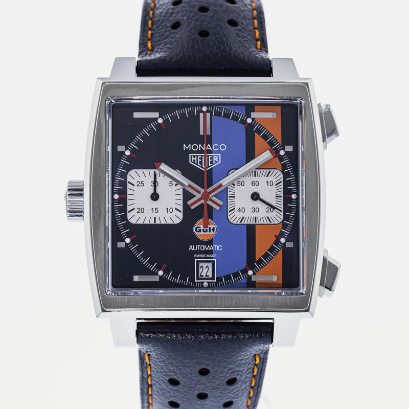 The TAG Heuer TAG Heuer Monaco Gulf 2018 Special Edition CAW211R is a pre-owned TAG Heuer watch available for purchase across multiple resale platforms. Shop 12 active listings with prices ranging from $4,600 – $7,100. Find this item on Crown & Caliber. Listings are available in Good condition, so you can choose the quality and price point that suits you.