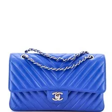 The Chanel Chanel Classic Double Flap Bag Chevron Lambskin Medium is a pre-owned Chanel handbag available for purchase across multiple resale platforms. Shop 6 active listings with prices ranging from $6,385 – $7,080. Find this item on eBay. Listings are available in Fair and Good condition, so you can choose the quality and price point that suits you.
