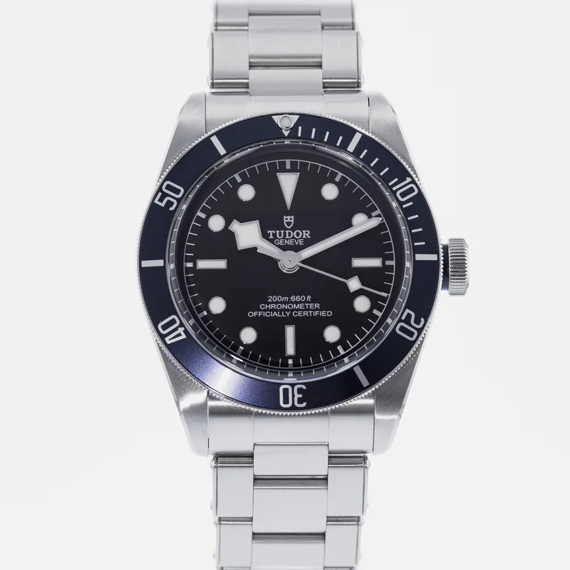 The Tudor Heritage Black Bay Blue 79230 showcases the brand's commitment to blending vintage aesthetics with modern watchmaking excellence. This timepiece features a robust 41mm stainless steel case, renowned for its durability and corrosion resistance, making it suitable for both everyday wear and adventurous pursuits. The striking blue dial, adorned with luminous hour markers and hands, enhances visibility in low-light conditions, while the unidirectional rotating bezel adds functionality for divers. Drawing inspiration from Tudor's rich maritime heritage, the Black Bay collection is celebrated for its classic dive watch design, and the 79230 variant stands out with its bold colorway. The watch is powered by Tudor's in-house automatic movement, ensuring precision and reliability. Additionally, the watch features a comfortable stainless steel bracelet that complements its sporty yet elegant styling. Collectors appreciate the Tudor Heritage Black Bay Blue for its versatility and timeless appeal, making it a favored choice among watch enthusiasts. This model runs true to size, offering a comfortable fit for various wrist sizes, and is built to withstand the rigors of daily wear while maintaining its sophisticated look.