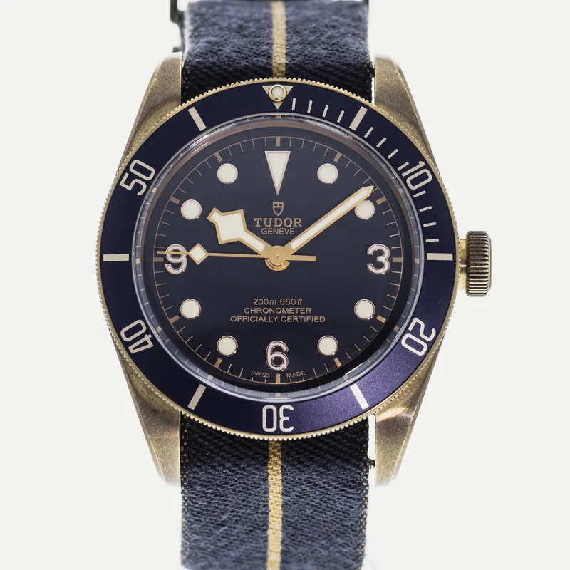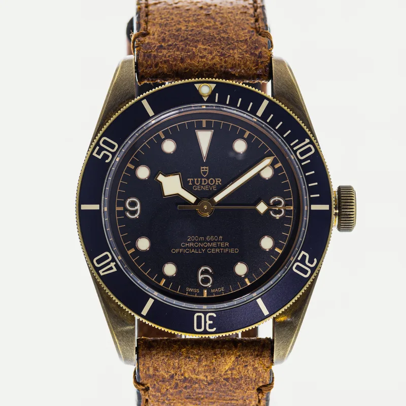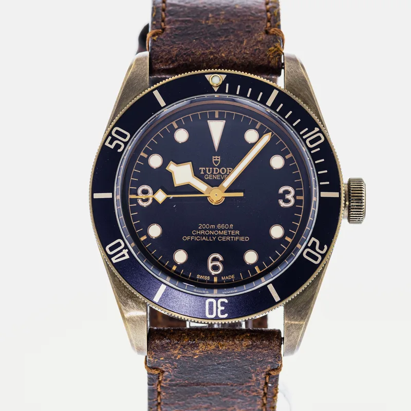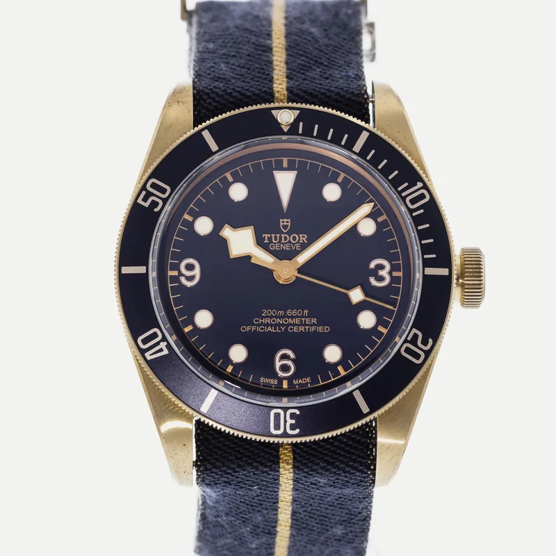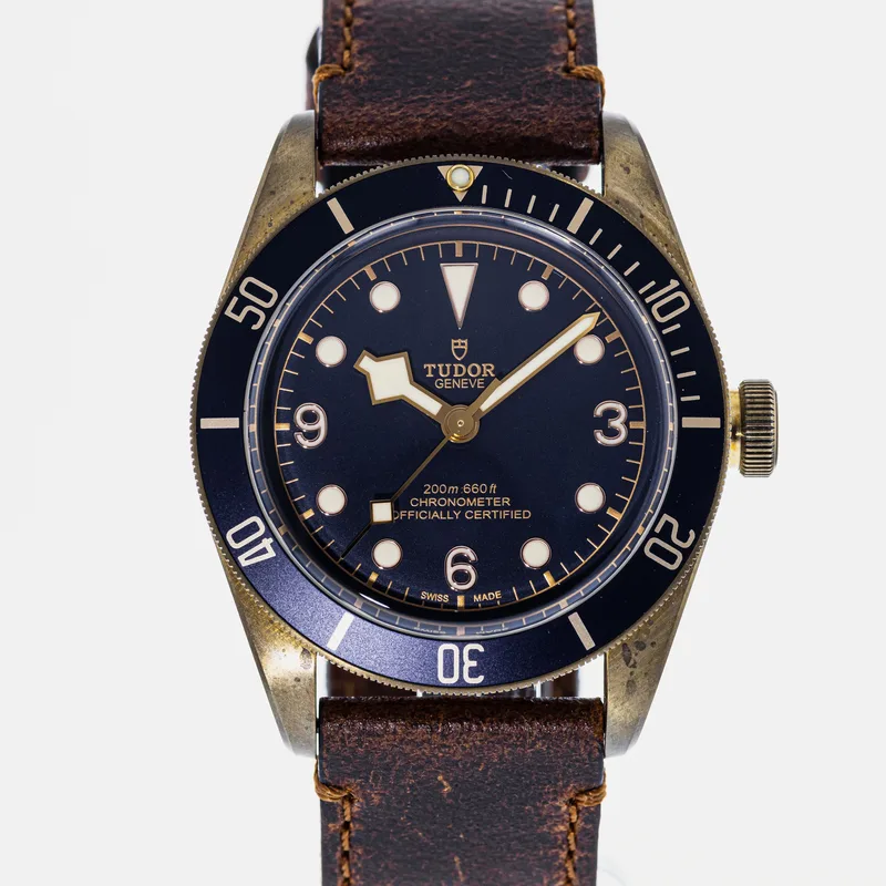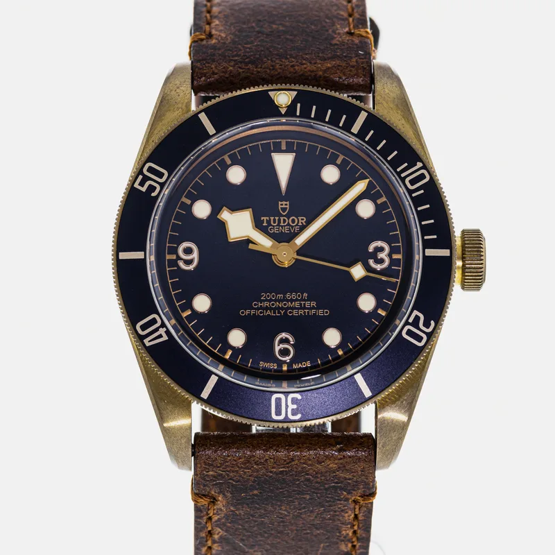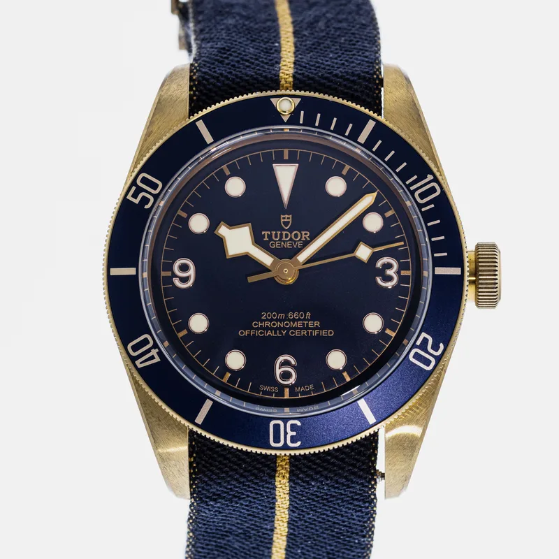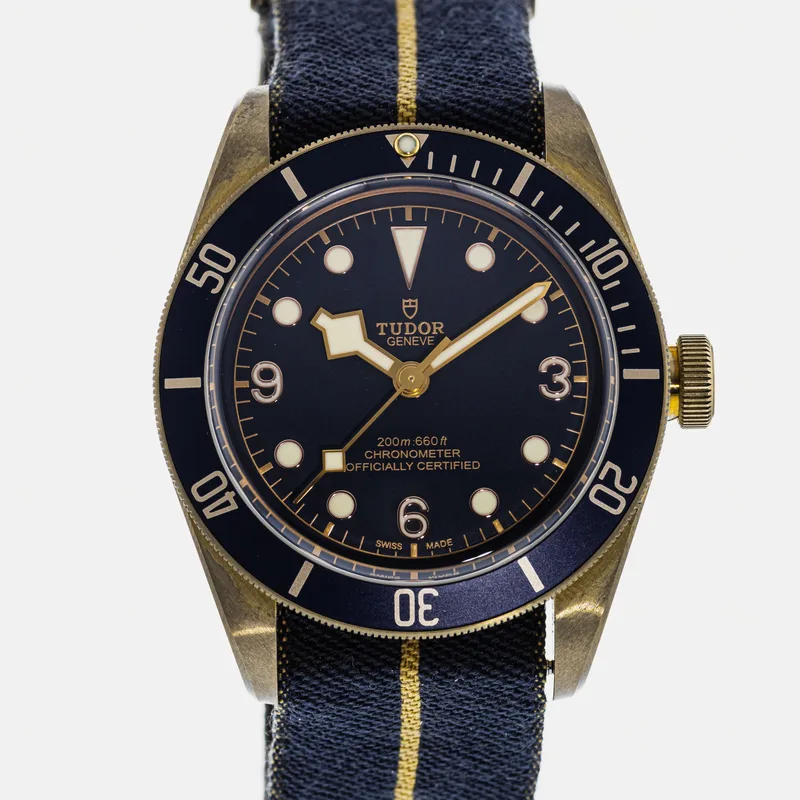 The Tudor Heritage Black Bay Bronze Blue Bucherer Special Edition 79250 is a pre-owned Tudor watch available for purchase across multiple resale platforms. Shop 13 active listings with prices ranging from $3,250 – $4,250. Find this item on Crown & Caliber. Listings are available in Good condition, so you can choose the quality and price point that suits you.